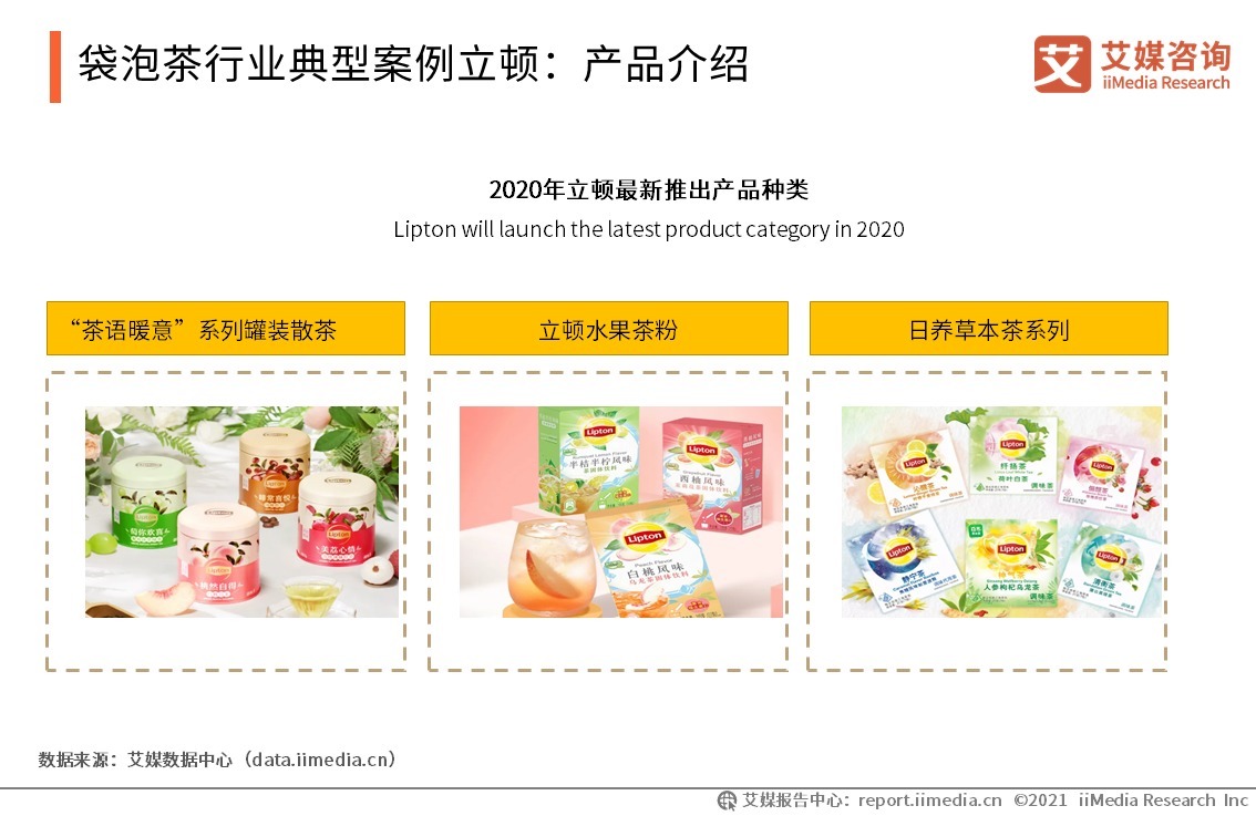 随着产品的不断迭代和多元化的业务发展,在中国市场经营袋泡茶、茶粉、奶茶、罐装散茶等多种茶品类。目前,已推出200多种产品。 2020年10月,立顿推出近20款新品,涵盖罐装散茶、果茶粉和日用凉茶系列。在核心茶包业务中,立顿不断创新以满足当前的茶叶需求。日常凉茶系列符合当代消费者“健康养生”的潮流。它是当地茶叶市场的新宠,市场不断增长。率达到89%。